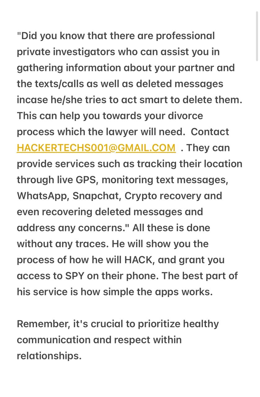 Hello everyone, I would like to share my story with you all because I believe it would be of help. I just got over my divorce tussle that went on for almost two years, I filed for divorce because I knew he was cheating but I had no evidence to back up my claim. Long story short I decided to check online if I could have access to another person’s phone without touching or installing any software on it and I met this guy Thomas and I was very shocked because I got all the info including deleted ones. If you would like to get in touch with him, send him a mail;