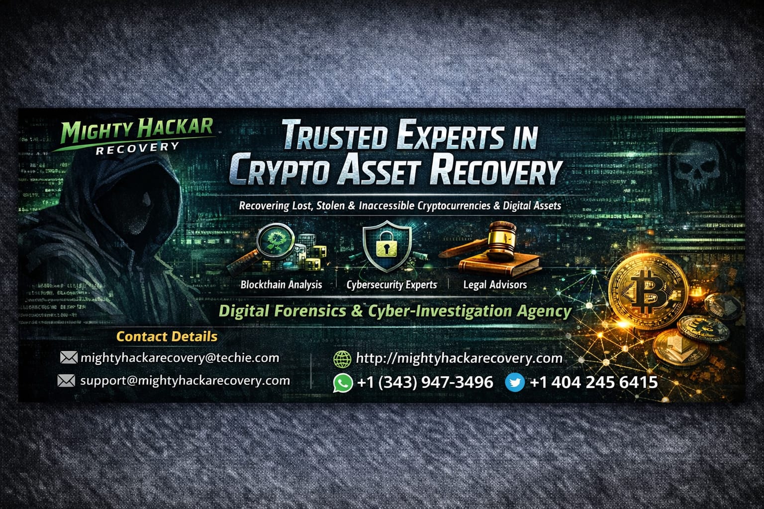 Digital assets have become a cornerstone of modern finance, creativity, and investment. From cryptocurrencies like Bitcoin and Ethereum to high-value NFTs, the digital economy continues to expand rapidly. Unfortunately, this growth has also attracted hackers, scammers, and fraudsters, leaving countless individuals and businesses facing devastating losses. At Mighty Hackar Recovery, we provide intelligent crypto and digital asset recovery solutions designed to help victims reclaim what was taken from them.